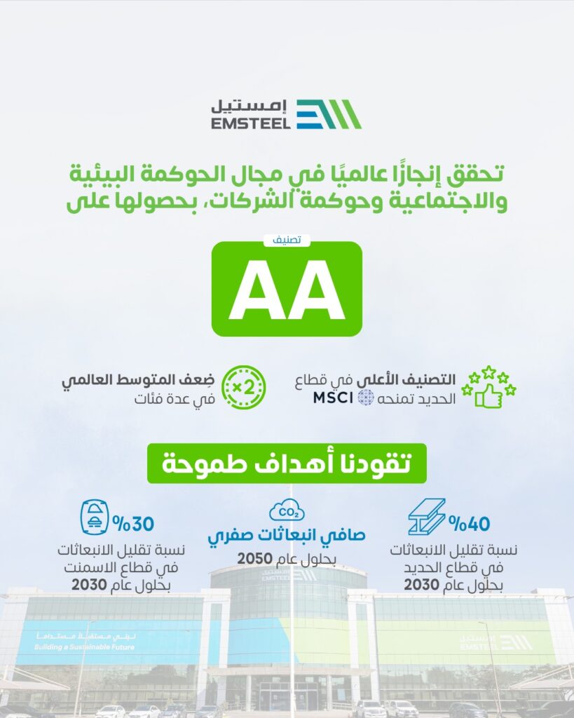 أعلنت إمستيل، (“المجموعة”)، إحدى أكبر الشركات المدرجة لإنتاج الحديد ومواد البناء في المنطقة، عن حصولها على التصنيف (AA) في مجال الحوكمة البيئية والاجتماعية وحوكمة الشركات، من […]